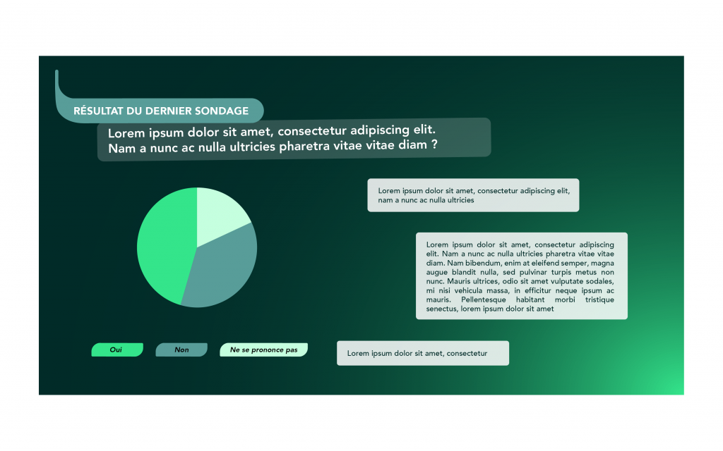 Chaque visuel a été pensé pour s’intégrer harmonieusement dans la plateforme, tout en respectant la charte graphique établie. L’enjeu était de trouver le juste équilibre entre esthétisme, clarté de l’information et cohérence visuelle, afin de rendre l’expérience utilisateur fluide et engageante, tout en renforçant l’impact des messages communiqués.
