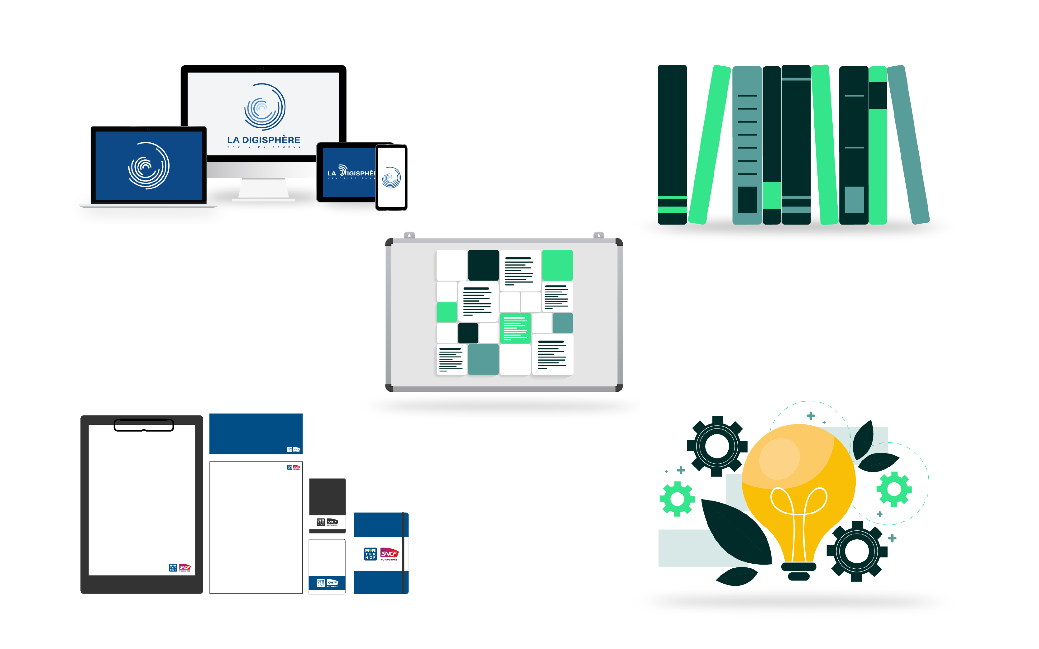 Le concept du logo repose sur l’idée de construire et de structurer l’information de manière harmonieuse. Les formes graphiques, à la fois épurées et modulaires, peuvent fonctionner individuellement tout en se complétant pour former une unité cohérente. Ce jeu d’assemblage symbolise la connexion et la collaboration au sein de la ligne managériale du TER Hauts-de-France. Le design, résolument contemporain, apporte une touche d’élégance et de modernité, rendant l’univers visuel du projet attractif et engageant. L’identité graphique reflète ainsi l’idée d’une communication fluide, dynamique et accessible, tout en renforçant l’adhésion des managers à cette nouvelle plateforme.