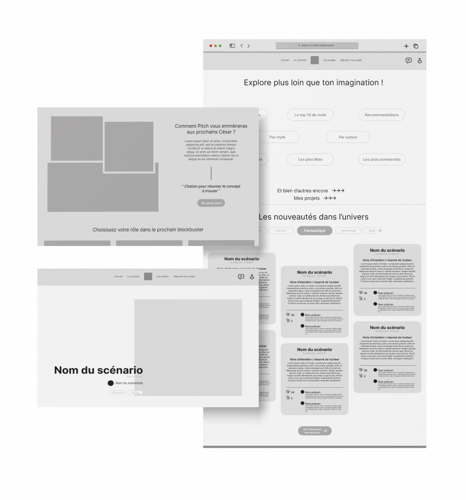 Réalisation de la plateforme sous Figma en réalisant un prototype fonctionnel. L’idée de l’identité c’est sur le principe des post-its où un scénariste peut venir coller et décoller ces idées, tout le principe de l’interface se base là-dessus.